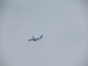 おっと、千歳空港に降りる飛行機が真上を通過!